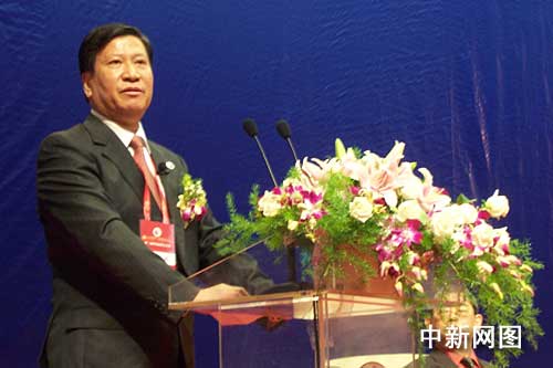 陳進玉在第二屆世界溫州人大會上發(fā)言。