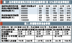 根據(jù)泰達(dá)荷銀基金公司提供的數(shù)據(jù)顯示,如果你在孩子出生時(shí)開(kāi)始積累子女完成高等教育所需的60萬(wàn)元經(jīng)費(fèi),那么,以10%的復(fù)利計(jì)算,投資期限15年,你每月只需投資1448元即可完成子女教育經(jīng)費(fèi)規(guī)劃。需要提醒投資者的是,子女教育費(fèi)用的積攢越早越好,籌措同樣金額的教育經(jīng)費(fèi),越早開(kāi)始,你的經(jīng)濟(jì)壓力就越小。