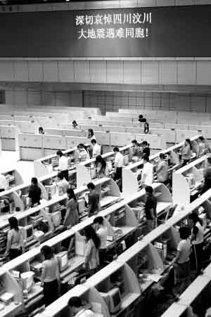 昨天一早,一位“夢(mèng)不見(jiàn)了”的投資者最先在網(wǎng)上發(fā)帖。這篇題為“全國(guó)哀悼日(19日至21日)我們鎖倉(cāng)為汶川地震遇難同胞致哀”的帖子這樣寫道:“5月19日至21日是全國(guó)哀悼日,讓我們股民也用自己的行動(dòng)來(lái)表達(dá)對(duì)汶川地震中遇難同胞的深切哀悼,讓我們共同鎖倉(cāng)三天!為災(zāi)區(qū)同胞獻(xiàn)上自己的愛(ài)心,為災(zāi)區(qū)同胞祈福!”黑色加粗的字體、簡(jiǎn)單樸素的語(yǔ)言,卻道出了大批投資者的心聲。在19日至21日的全國(guó)哀悼日中,投資者的眼中已沒(méi)有股市。