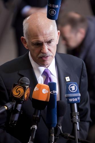 5月7日,希臘總理帕潘德里歐抵達比利時首都布魯塞爾歐盟委員會總部后接受采訪。歐元區(qū)16國領(lǐng)導人7日晚間在布魯塞爾召開特別峰會,評估各國議會對2日啟動的希臘救助機制的審批情況,并重點討論如何加強歐元區(qū)經(jīng)濟治理以及強化對成員國的財政監(jiān)督問題。 新華社發(fā)(莫納斯攝)