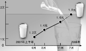 劉先生告訴記者,他家一直訂的衛(wèi)崗天元奶,2007年上半年的時候還是1.2元一瓶,2007年8月份漲到了1.4元,11月又漲了2毛到1.6元,時隔2個月,又要從1.6元漲到1.8元,算起來,這半年里,連漲兩次,每次都漲2毛錢,漲幅已經(jīng)遠遠超過10%!面對如此不斷的漲價,劉先生說自己得考慮是不是該少訂點了!