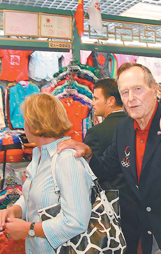 老布什和女兒逛秀水市場(chǎng)。記者 廖先旺攝