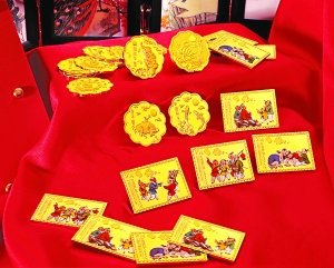 中秋節(jié)還沒(méi)到,中秋黃金禮品市場(chǎng)已經(jīng)風(fēng)起云涌。在中國(guó)黃金旗艦店和西單店,記者看到,“黃金月餅”亮晃晃地被擺在柜臺(tái)很搶眼。據(jù)介紹,每塊“月餅”重10克,價(jià)格為2180元。旁邊的黃金郵票每枚20克,價(jià)格4360元。