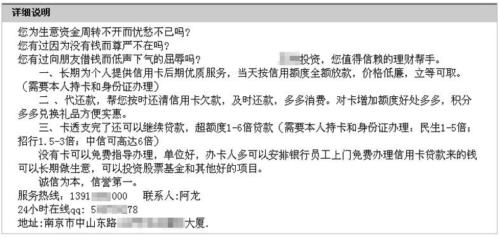 記者在互聯(lián)網(wǎng)上看到,各種代辦信用卡的廣告數(shù)不勝數(shù)。有廣告稱“本公司直接和銀行信用卡推廣員合作,可通過內(nèi)部推薦的方式辦理多家銀行信用卡,只憑身份證件復(fù)印件就可辦理,無業(yè)人員照樣辦理,收入證明等相關(guān)資料可以由本公司為您代開……”