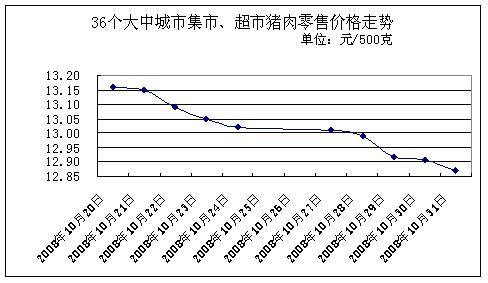 中新網(wǎng)11月3日電 據(jù)國家發(fā)改委網(wǎng)站消息,國家發(fā)改委價格監(jiān)測中心監(jiān)測顯示,上周(2008.10.27-2008.10.31,下同)全國36個大中城市集市、超市豬肉(精瘦肉)平均零售價格每500克為12.94元,與前一周(2008.10.20-2008.10.24,下同)相比下降1.18%。