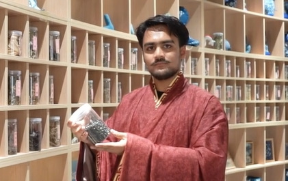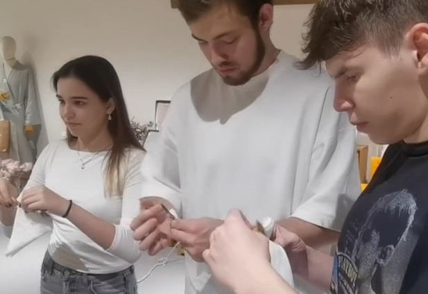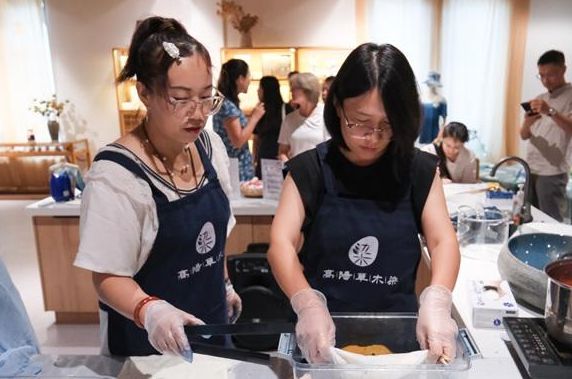 將荷葉自池塘里摘下,用手反復(fù)揉搓,讓紗布與汁液充分融合,稍等片刻,一塊黃色的紗巾就出現(xiàn)在段惠的手中。 |