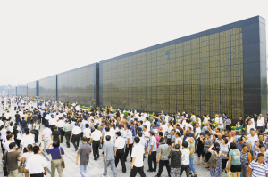 與此同時(shí),為方便群眾查找罹難親人的姓名,公園管理處采取在紀(jì)念墻上增設(shè)圖示銘牌的方式,完善了查詢(xún)系統(tǒng),在每面紀(jì)念墻的圖示銘牌上標(biāo)明與罹難者姓名相對(duì)應(yīng)的編號(hào),使前來(lái)祭掃的群眾能夠按照編號(hào)迅速查找到罹難親人姓名在紀(jì)念墻上的準(zhǔn)確位置。