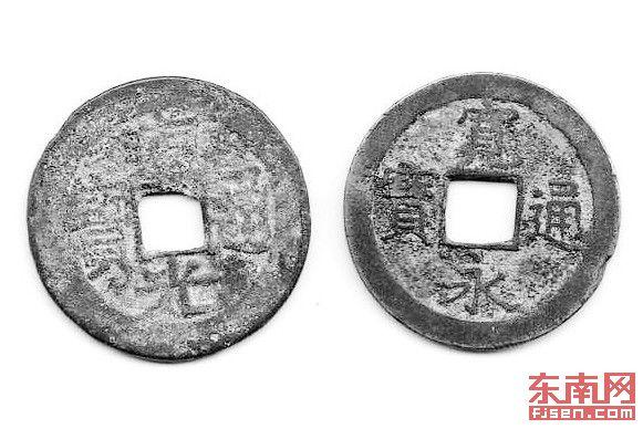 婦女王某今年40歲出頭,是翔安區(qū)新店鎮(zhèn)人。昨日7時(shí)許,王某跟平常一樣,在退了潮的新店鎮(zhèn)歐厝村海邊附近的灘涂地挖苦螺。一鏟下去,王某意外從灘涂里挖到兩枚綠銹斑斑的古銅錢,便帶回家,經(jīng)過(guò)王某清洗并用細(xì)沙打磨,尚能看清字跡,該兩枚銅錢便被王某收存起來(lái)。
