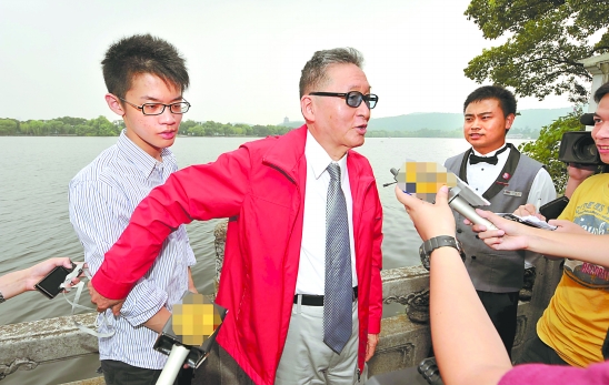 昨天下午,杭州劉莊,只睡了4個小時的李敖在接受完省領導接見、媒體訪問和午餐以后,本來已經(jīng)回房午休了,結(jié)果中途他拉著兒子的手出來,兩個人悄悄地走到湖邊欣賞風景。那時,留在劉莊的記者所剩不多,看到父子兩個親昵交談的背影都有點不好意思上前打擾。終于有人鼓起勇氣和李敖搭話,他就感慨:“我們一家人其實從來沒一起出來旅游過,這次以后也許也沒有更多的機會了!庇浾弑桓腥玖耍e起相機為他們父子在湖邊留下合影。