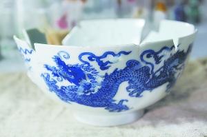 “這件文物就是在我手中獲得重生的!敝驹刚吲随面谜f(shuō),她從3月26日開(kāi)工,拼出來(lái)的第一件瓷器就是這個(gè)雙龍戲珠碗。至今,她還清楚地記得,那天剛好是6月16日端午節(jié)。