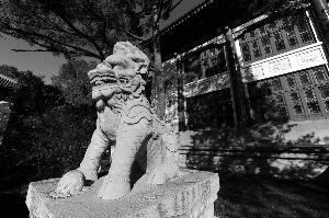 在文津街國家圖書館門前,一對威武的石獅滿面滄桑,雙爪和臀部還有修補(bǔ)的痕跡!皼]錯,這對劫后余生的石獅就是來自圓明園!眰鬟_(dá)室的守門人對石獅的來歷略知一二。石獅長170厘米,高約300厘米。上世紀(jì)30年代由圓明園移至此處。