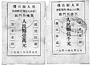 ?谀壬依锉4嬷鴥蓮埈偵娇h發(fā)動百姓向志愿軍捐款,購買“瓊山人民號”飛機的證明捐款票證。 沈善東 攝