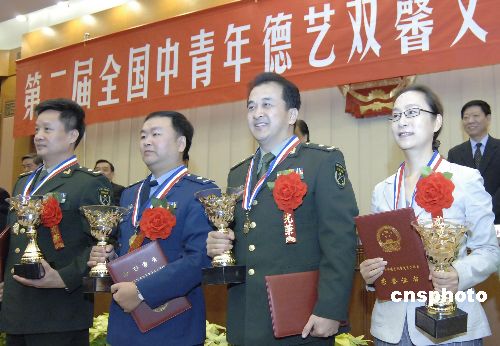 這一由人事部和中國文聯(lián)聯(lián)合開展的評(píng)選表彰活動(dòng)始于二00四年,當(dāng)年授予三十名藝術(shù)家“全國中青年德藝雙馨文藝工作者”榮譽(yù)稱號(hào),此次則擴(kuò)充至五十六人,涵蓋舞蹈、美術(shù)、音樂、曲藝、攝影、影視等各門類,彭麗媛、鞏漢林、黃宏、閻維文等一批觀眾耳熟能詳?shù)奈乃嚸餍,以及業(yè)內(nèi)知名人士如中國新聞社副總編王瑤(中國首位荷賽大獎(jiǎng)獲得者)等人皆在列。