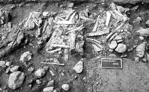 2003年到2006年,黃萬波與法國科考隊(duì)在龍骨坡發(fā)現(xiàn)了一個(gè)3平方米左右的化石層。重疊堆積著大量的動(dòng)物前后腿化石,有明顯的石器砸削痕跡,就此判斷有人類活動(dòng)。