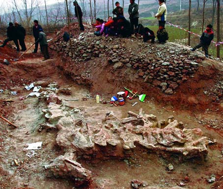 這幾天,地處偏僻山溝的洛陽(yáng)市汝陽(yáng)縣劉店鄉(xiāng)郝嶺村成了遠(yuǎn)近聞名的明星村,每天都有數(shù)不清的人前來(lái),一睹剛剛被發(fā)現(xiàn)的“恐龍”風(fēng)采。