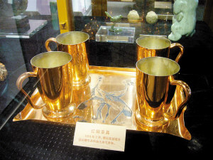 在展覽中,1974年2月贊比亞總統(tǒng)卡翁達(dá)贈(zèng)送給中共中央主席毛澤東的紅銅茶具意義非凡。茶具有一盤四杯,由紅銅制成。贊比亞銅儲(chǔ)量約占世界銅儲(chǔ)量的15%,人均銅產(chǎn)量位居世界第一,贊比亞因此有“銅礦國”之稱。有鑒于銅制品最能體現(xiàn)國家和民族特色,贊比亞領(lǐng)導(dǎo)人把銅制工藝品作為贈(zèng)送外國領(lǐng)導(dǎo)人的首選禮品。