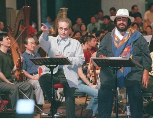 2001年6月,先期到達北京參加世界三大男高音午門演唱會的帕瓦羅蒂和卡雷拉斯,20日下午與中國中央歌劇院的演員和樂隊一起排練。 中新社發(fā) 李剛 攝