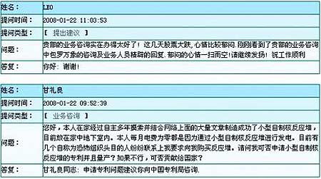 問(wèn)題: 貴部的業(yè)務(wù)咨詢實(shí)在辦得太好了! 這幾天股票大跌,心情比較郁悶.剛剛看到了貴部的業(yè)務(wù)咨詢中包羅萬(wàn)象的咨詢及業(yè)務(wù)人員精辟的回復(fù).郁悶的心情一掃而空!請(qǐng)繼續(xù)發(fā)揚(yáng)! 祝工作順利
