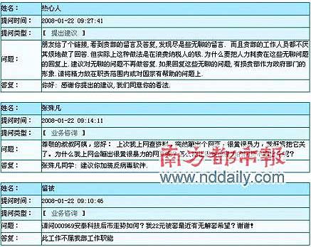 現(xiàn)在,在科技部“公眾問(wèn)答”欄目能夠看到的最新留言大都是網(wǎng)友稱贊他們不管多無(wú)聊問(wèn)題都認(rèn)真回答的,而他們被稱贊的原因———那些無(wú)聊問(wèn)題則一個(gè)都不見了。本報(bào)記者 張東鋒