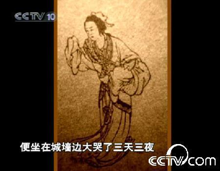 節(jié)目指出,第一個記述崩城之事的人,是西漢末年的劉向。他在《烈女傳》中先重述了《左傳》中杞粱妻的故事,然后他繼續(xù)寫到:杞粱妻沒有子嗣,娘家婆家也都沒有親屬,夫死之后成了個孤家寡人。杞粱妻“就其夫之尸于城下而哭之”,哭聲十分悲苦,過路人無不感動。十天以后,“城為之崩”。唐代的有關(guān)記載,使杞粱妻的故事大變了模樣。杞粱由春秋的齊人變成秦朝的燕人;杞粱妻的名字出現(xiàn)了,她姓孟名仲姿,或姓孟名姜女;杞粱的死因不再是戰(zhàn)死疆場,而是因避役被捉后筑于城墻之內(nèi),所以其妻要向城而哭;而筑于城墻之內(nèi)的死尸實在太多了,只有滴血認(rèn)骨才能辨別。杞粱妻的故事經(jīng)過六朝、隋唐時代的加工,把崩城和秦始皇聯(lián)系在了一起,這是一個不小的創(chuàng)造。
