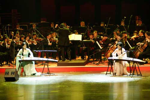 近日來,這些活躍于國際樂壇、享有極高聲望的華人音樂家在國家大劇院內(nèi)進(jìn)行了緊張的彩排。黃英的《春江花月夜》、殷承宗的鋼琴協(xié)奏曲《黃河》,齊•寶力高的《心靈之歌》,袁莉袁莎姐妹的古箏曲目《漁舟唱晚》響徹國家大劇院的歌劇廳,激蕩人心。本次音樂盛典的一大特色是“中國旋律,西式演繹;傳統(tǒng)藝術(shù),現(xiàn)代表現(xiàn)”,這在連續(xù)兩日袁莉袁莎姐妹古箏演奏中得到了極好的體現(xiàn)。她們表示,古箏是中國的傳統(tǒng)樂器,但這一次就與交響樂合奏,擴(kuò)大了傳統(tǒng)的舞臺,可以使更多的觀眾了解接受欣賞這一藝術(shù)。是一項很好的嘗試。在排練的同時,這些藝術(shù)家們,時刻不忘災(zāi)區(qū)。他們多次詢問災(zāi)區(qū)的情況,關(guān)注還在返鄉(xiāng)途中的同胞。不管他們能否有機(jī)會聽到這些音樂,都希望音符的傳揚(yáng)可以給他們帶去力量和希望。