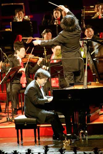 殷承宗現(xiàn)居美國,當(dāng)聽說中國南方正遭遇50年一遇的雪災(zāi)時(shí),這位愛國的鋼琴家受到邀請后義無反顧地前來演出,而大年三十當(dāng)天他還得飛回美國。在音樂會上,殷承宗再現(xiàn)經(jīng)典,把根據(jù)《黃河大合唱》改編的鋼琴協(xié)奏曲《黃河》,演繹得氣勢恢宏。另一個(gè)著名的民歌演唱家宋祖英,本已為南方雪災(zāi)籌集資金演出多場,嗓子發(fā)炎,但為給災(zāi)區(qū)人民帶來捐款,不顧疾病堅(jiān)持上場。