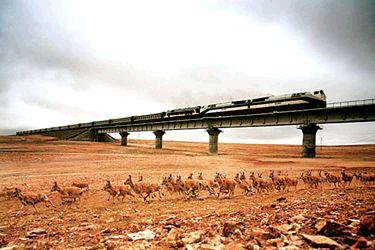 李小萌:藏羚羊是你拍攝這組照片的主題,你選的這個(gè)地方,火車和鐵軌是很重要的一個(gè)主體,你在這兒要拍這張照片的目的是什么?
