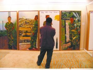 昨天在北京開始的為期兩天的預(yù)展是香港蘇富比春季拍賣巡展的第一站,展出上百件藝術(shù)品和瓷器工藝品,而會場正中的就是由18張海峽兩岸軍人肖像組成的《戰(zhàn)地寫生:新十八羅漢像》。這是“新寫實主義”代表藝術(shù)家劉小東2004年參加“金門碉堡藝術(shù)館──十八個個展”時創(chuàng)作的作品,他花了三個星期在中國大陸和臺灣的軍營內(nèi),找來九位軍人作為肖像的主角,并在畫中記下他們的名字和籍貫,象征性地彰顯畫家對兩岸和諧合作的期盼。次年,這組作品在北京舉行的國際畫廊博覽會上以50萬美元被來自西安的商人淡勃買下,轟動一時。今年北京嘉德的春拍也將出現(xiàn)劉小東的油畫《溫床》,根據(jù)之前媒體的報道,這件作品的創(chuàng)作計劃也和淡勃的投資有關(guān)。除了劉小東,岳敏君、劉野等藝術(shù)家的作品也將出現(xiàn)在這次拍賣中。