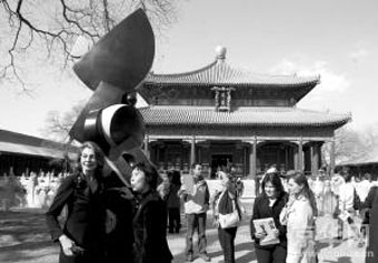 昨天,希臘著名畫(huà)家、雕塑家索菲亞·瓦瑞當(dāng)代藝術(shù)展在孔廟舉行。索菲亞·瓦瑞說(shuō),她第一次看到孔廟的照片時(shí),覺(jué)得“這樣莊嚴(yán)得讓人恐懼的地方,也許不適合展出現(xiàn)代風(fēng)格的雕塑作品”。但當(dāng)她真正踏入孔廟的時(shí)候,覺(jué)得這建筑如此“神圣而神秘”,“似乎有圣人守護(hù)我的作品”,于是,索菲亞·瓦瑞把她在過(guò)去15年中創(chuàng)作的7件青銅作品和15幅油畫(huà)作品,陳列在剛剛修繕完畢的孔廟展出?讖R國(guó)子監(jiān)管理處馬法柱主任說(shuō):“這是孔廟首次舉辦這樣的當(dāng)代藝術(shù)展。”展覽持續(xù)到4月20日結(jié)束。(記者 趙楠楠 蒲東峰 攝)