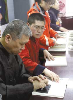 當(dāng)天馬未都“簽售”7160本,但與當(dāng)年于丹手簽到天黑不同,馬未都不簽名,只蓋章,速度提高不少。但這樣的方式卻讓部分讀者覺得遺憾。在馬未都的百度貼吧里,有讀者說,馬未都給他“蓋了個現(xiàn)代章,愚弄了收藏愛好者”。這位讀者表示,簽字售書可以少簽,但不應(yīng)不簽。在馬未都的博客上,也有讀者對蓋章的做法表示遺憾,稱親筆的簽名可以給書帶來生命。當(dāng)天排隊的讀者中有不少是收藏愛好者,他們認(rèn)為手簽的書更有收藏價值。(記者趙明宇)