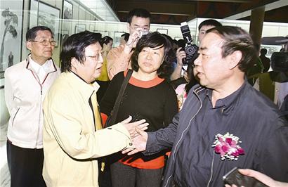 昨日上午10點(diǎn),賈平凹個(gè)人書(shū)畫(huà)展在武侯祠博物館群賢堂隆重舉行,他的文壇好友魏明倫以及作家麥家前來(lái)捧場(chǎng)。同時(shí),現(xiàn)場(chǎng)也有許多聞?dòng)嵡皝?lái)的游客和慕名而來(lái)的賈平凹的讀者。