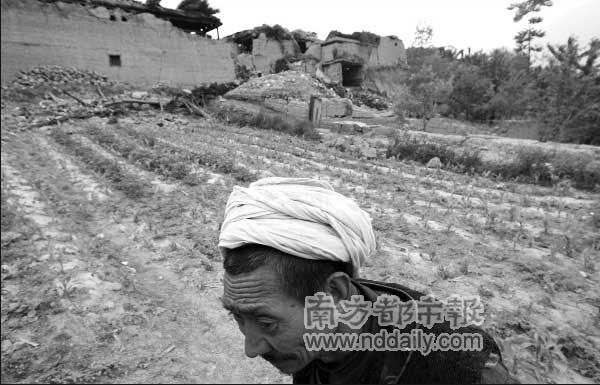 寨子里的建筑幾乎被夷為平地,226戶人家的房屋無一幸免地倒塌。那些扛過了近五千年風(fēng)雨的黃泥墻,已被摧成一地廢墟,倒在地上碎成一塊塊的黃泥磚。寨子里還立著的建筑,是沒有了墻體的木門框,四壁皆無的房架上掛著的一米多長的熏臘肉在迎風(fēng)搖擺。