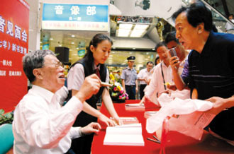 昨天上午,著名作家王蒙來到廣州購書中心,為《王蒙自傳》(花城出版社出版)第三部《九命七羊》簽售。現(xiàn)場王蒙仍是一派快人快語作風(fēng),其幽默、睿智而又不乏銳氣的表達(dá)征服了“粉絲”們的心。