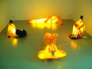 參展“融超經(jīng)驗(yàn)2008”的23位藝術(shù)家中,既有像庫(kù)奈利斯這樣享譽(yù)國(guó)際的名藝術(shù)家,也有初出茅廬的青年人。在開幕式上,記者看到了如今旅居羅馬的庫(kù)奈利斯的三個(gè)“無題”裝置藝術(shù),還有喬治·拉帕斯的“發(fā)光雕塑”與盧卡斯·薩馬拉斯的《鏡中的房間》。喬治·拉帕斯介紹,他的靈感來自街上的燈箱:“當(dāng)光源的光向四處彌漫,四周的氛圍都發(fā)生了變化!