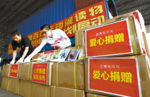 6月3日下午,廣東省支援地震物資中心迎來了一批災(zāi)區(qū)急需的特殊物資——價值百余萬元的動漫圖書及雜志。動漫類圖書是深受青少年兒童喜愛的讀物,有關(guān)方面希望通過對動漫圖書的捐贈,讓他們重新找回屬于自己的童真,為災(zāi)區(qū)青少年兒童帶去快樂和心靈上的慰藉。