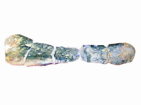 目前,已挖掘出土的化石有股骨、趾骨、和一些關(guān)節(jié)骨頭,已收集骨頭30多塊。還有部分骨化石包裹在巖石里面,株洲市文物局已運(yùn)回兩車巖石,將對(duì)其進(jìn)行切割、清理?脊湃藛T將恐龍化石的趾骨、股骨拼湊起來(lái),經(jīng)測(cè)量趾骨約20厘米,股骨長(zhǎng)約77厘米,接近屁股段的股骨化石寬約22厘米,考古專家推測(cè)其腿部高在2米以上,據(jù)此可推斷是巨型恐龍。