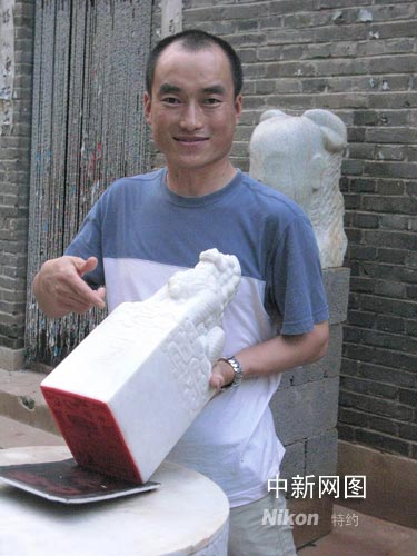 據(jù)了解,“平安中國(guó)印”由曲陽(yáng)縣著名藝人龐少賢歷時(shí)兩個(gè)月手工雕刻而成。龐少賢說(shuō),印章在中國(guó)傳統(tǒng)文化中代表著吉祥和平安。今年在中國(guó)發(fā)生了冰凍災(zāi)害及汶川大地震等自然災(zāi)害,國(guó)家和人民損失重大。作為一名雕刻藝人,他決定做一枚“平安中國(guó)印”,以此來(lái)祈福中國(guó)吉祥、平安。