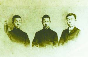 留學(xué)日本時(shí)的陳氏兄弟合影。左起陳隆恪、陳寅恪、陳衡恪。