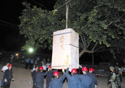 昨日記者獲悉,南京大報恩寺“謎中之謎”——地宮鐵函在眾多持槍武警的護衛(wèi)下,于27日晚起吊出地宮,運回南京市博物館。南京博物院文物保護專家奚三彩、中國考古學會理事長徐蘋芳等國內(nèi)專家已陸續(xù)到來,近期將集體對神秘鐵函的開啟制定出方案。