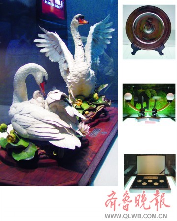在這次展覽中,胡錦濤主席獲贈(zèng)的多件國禮首次亮相。其中包括,蒙古總統(tǒng)巴嘎班迪贈(zèng)送胡錦濤的銀碗,斐濟(jì)總統(tǒng)伊洛伊洛贈(zèng)送胡錦濤的木帆船模型,沙特阿拉伯國王阿卜杜拉贈(zèng)送給胡錦濤的鍍金雕鷹等。