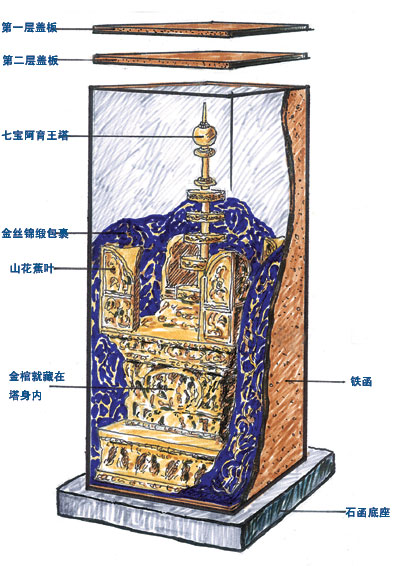 鐵函阿育王塔剖解示意圖。蔡震 繪
