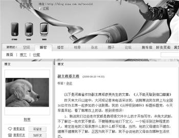 新浪網(wǎng)友:和他較勁是抬高他。姓韓的沒有生活積累,已經(jīng)江郎才盡了,當(dāng)然就四處咬人以吸引眼球了。
