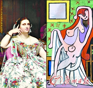 一個(gè)畫展,三個(gè)地點(diǎn),此次展覽就是要打破時(shí)空及藝術(shù)流派的界限。主展場(chǎng)是巴黎大皇宮國(guó)家美術(shù)館,同時(shí)兩個(gè)畢加索主題畫展在羅浮宮博物館和奧賽博物館展出,分別以德拉克洛瓦的“阿爾及爾的女人”(羅浮宮)以及馬奈的“草地上的午餐”(奧賽美術(shù)館)兩幅作品為中心展出畢加索的相關(guān)變體畫作品。