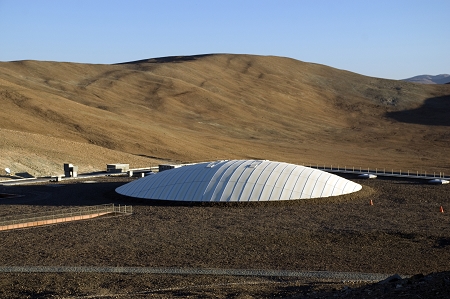影片的高潮發(fā)生在智利的歐洲南方天文臺(tái),這里邦德和他的對(duì)手展開(kāi)了最后的殊死搏斗。該天文臺(tái)位于阿塔卡馬沙漠中海拔2400米的山峰上,由德國(guó)建筑師奧爾和韋伯設(shè)計(jì),條紋狀表面的建筑物埋藏在荒蕪的沙漠下,由玻璃圓頂采光照亮室內(nèi)的花園和游泳池。由于該建筑坐落在非常偏僻的地方,人們很難有機(jī)會(huì)親臨現(xiàn)場(chǎng),因此這部電影是欣賞這座建筑物的絕好機(jī)會(huì)。有動(dòng)感的混凝土外表面、泥土色調(diào)的內(nèi)表面、深深的內(nèi)部透視空間,還有精致的細(xì)節(jié)……最后,觀眾將從鏡頭里看到它毀滅殆盡。