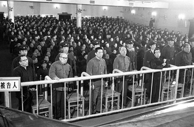 3 時03分,王洪文第一個被帶上被告席,接著是姚文元……3 時15分,江青被帶進(jìn)。