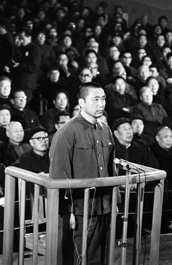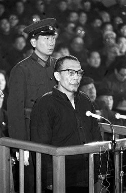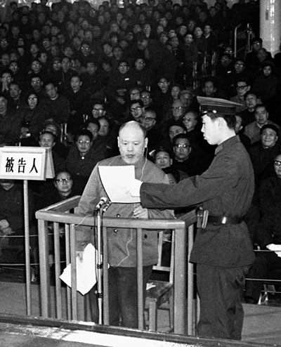 1980年11月20日下午3 時整,北京正義路,審判林彪、江青反革命集團(tuán)案特別法庭庭長江華宣布開庭。10名主犯受審。