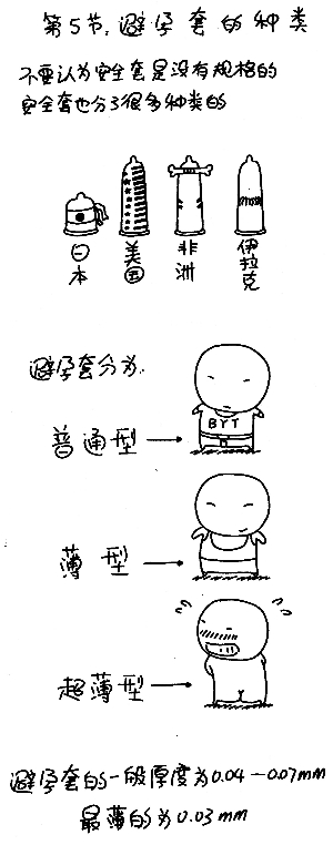 書中描寫的女孩子青春發(fā)育時的身體變化讓人捧腹,比如把女性乳房發(fā)育后的突起說成“被蚊子咬了兩個包”。對男性的“JJ的勃起”比喻成珠穆朗瑪峰那么高。更夸張的是,對安全套還詳盡地分類,性行為過程也花了大量篇幅描寫,具體分為“叫床篇”“高潮篇”“自慰篇”。書中還時不時地插播爆笑“漫畫廣告詞”:“我能!”“年輕無極限!”“驚喜從肌膚開始!”等。
