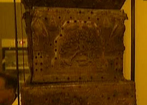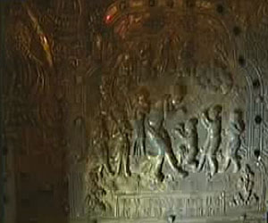 據(jù)現(xiàn)場(chǎng)專家介紹,這座精美的阿育王塔骨架是木質(zhì)的,外表是銀鎏金。由于浸泡了上千年,局部有開裂脫落,但已屬相當(dāng)完美。專家們有信心將這座寶塔恢復(fù)到千年前的情景。