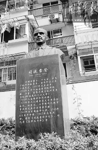 11月23日,星期天。杭州市下城區(qū)耶穌堂弄的基督教會天水堂里,像往常一樣傳出基督教徒們唱詩的聲音。司徒雷登的父親曾于1875年開始擔任這個教堂的主持。如今,司徒雷登的半身塑像,正立在距離教堂大約百米的堂弄里,那里也是他故居所在的位置。塑像對面的長凳上,一位納著花鞋墊的中年婦女,正與人湊在一起說著家庭瑣事。問及司徒雷登這個名字,她們搖了搖頭,對6天前已經(jīng)舉行的下葬儀式,她們更是一無所知。