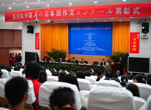 為紀(jì)念中日和平友好條約締結(jié)30周年和中國改革開放30周年,作為2008日中青少年交流年認(rèn)定事業(yè)之一,由日本僑報(bào)社日中交流研究所主辦,日本駐華大使館、人民日?qǐng)?bào)社人民網(wǎng)等支持,日本財(cái)團(tuán)特別贊助的“第四屆中國人日語征文大賽”,于今年3月拉開帷幕,首次分設(shè)論文部門和紀(jì)實(shí)部門,同時(shí)首次設(shè)立日本大使獎(jiǎng)。主題分別為“如何構(gòu)筑中日雙贏關(guān)系”、“我所知道的日本人”。